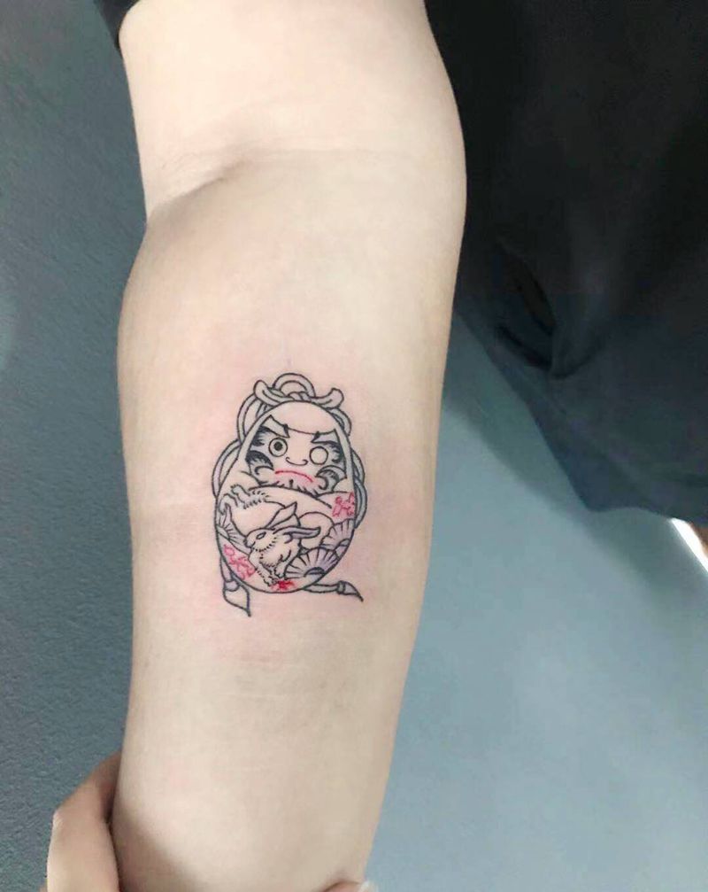 情侣达摩蛋纹身图片_手臂新传统纹身图案