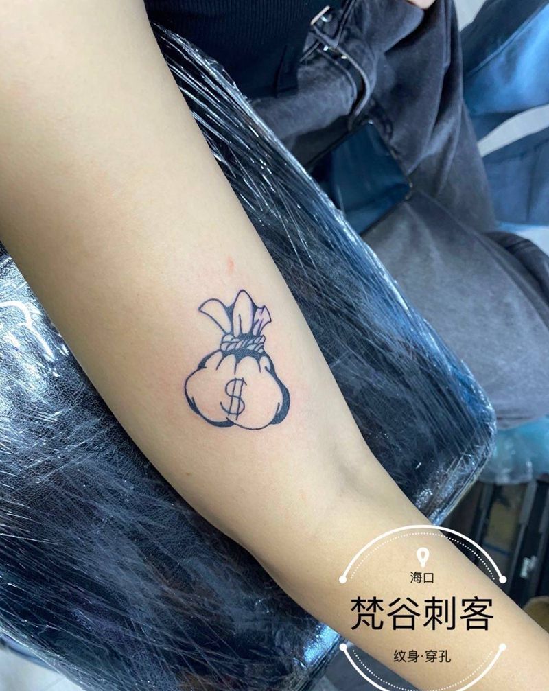 当前位置: 首页 >海南省海口市纹身店-梵谷刺客TATTOO纹身图案>钱袋子纹身图片_手臂Old School纹身图案