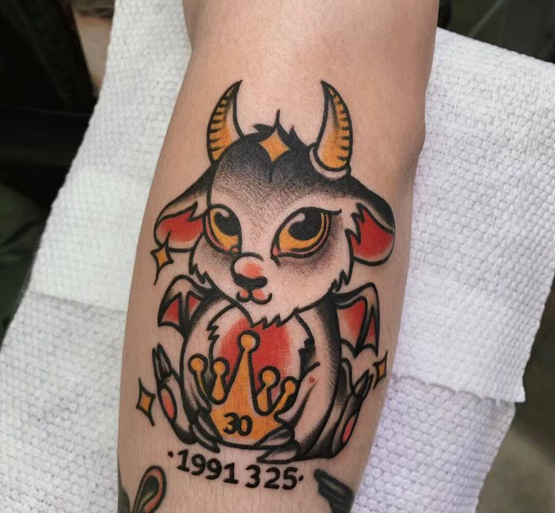 Oldschool羊【大涵作】纹身图片_手臂Old School原创羊生肖纹身图案