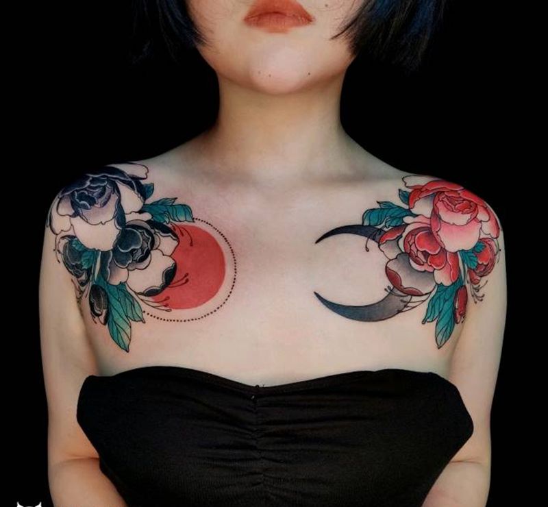 • 女性大花胸纹身_43张霸气漂亮的女性大花胸纹身图案作品