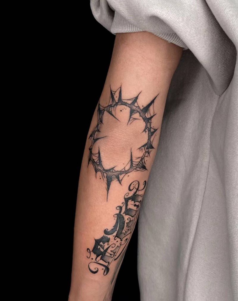 当前位置: 首页 >重庆市纹身店-木良拾贰文身艺术工作室纹身图案>【玖妹作品】纹身图片_手臂点刺几何荆棘纹身图案