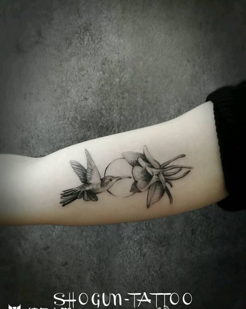 蜂鸟纹身图片_手臂清新动物蜂鸟成品纹身图案