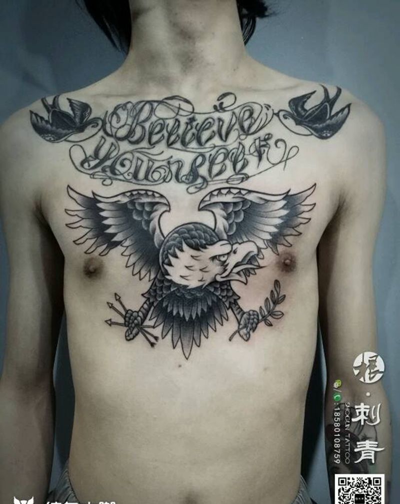 oldschool老鹰纹身图片_胸部传统动物原创鹰成品纹身图案