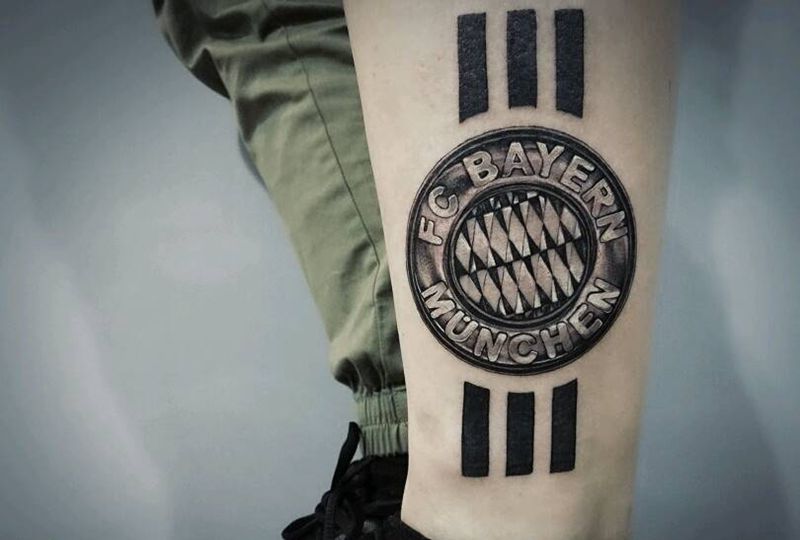 拜伦慕尼黑纹身图片_腿部写实logo手稿纹身图案