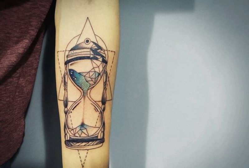 当前位置: 首页 >重庆市纹身店-木良拾贰文身艺术工作室纹身图案>沙漏纹身图片_手臂清新几何原创沙漏成品纹身图案