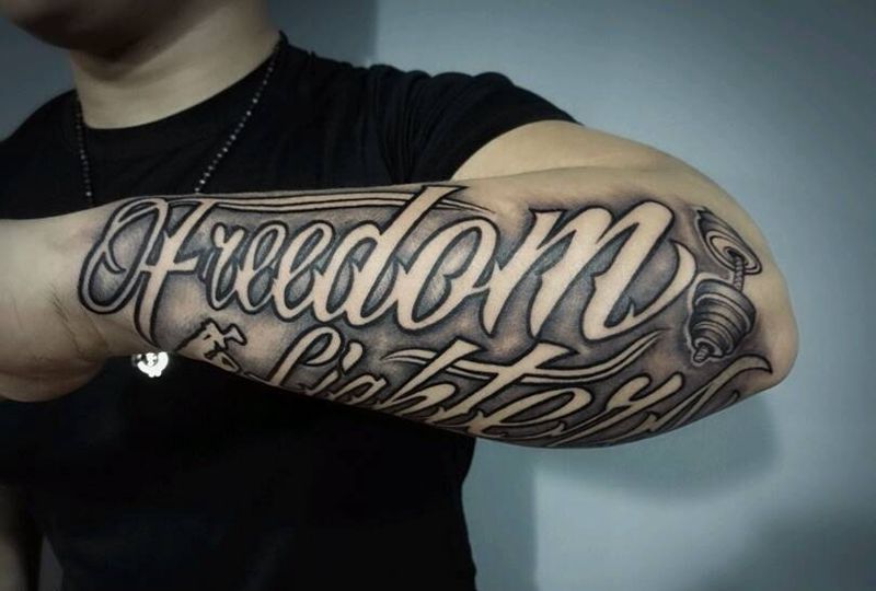 当前位置: 首页 >重庆市纹身店-木良拾贰文身艺术工作室纹身图案>原创奇卡诺纹身图片_手臂欧美字符奇卡诺成品纹身图案