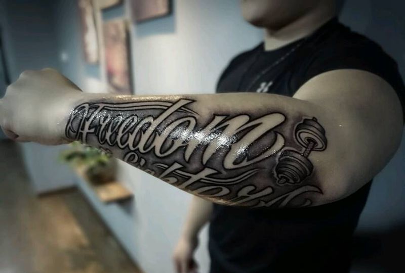 当前位置: 首页 >重庆市纹身店-木良拾贰文身艺术工作室纹身图案>原创奇卡诺纹身图片_手臂欧美字符奇卡诺成品纹身图案