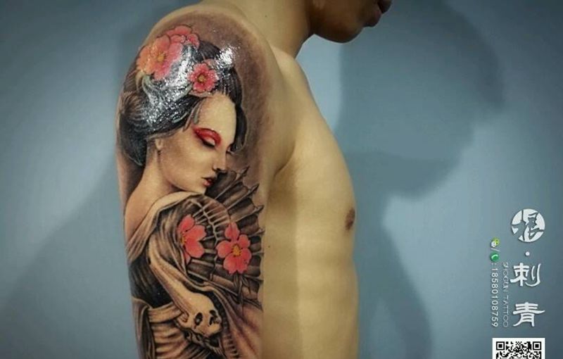 艺妓纹身图片_手臂写实人物艺妓成品纹身图案