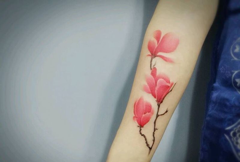 当前位置: 首页 >重庆市纹身店-木良拾贰文身艺术工作室纹身图案>玉兰花纹身图片_手臂清新国画植物花成品纹身图案