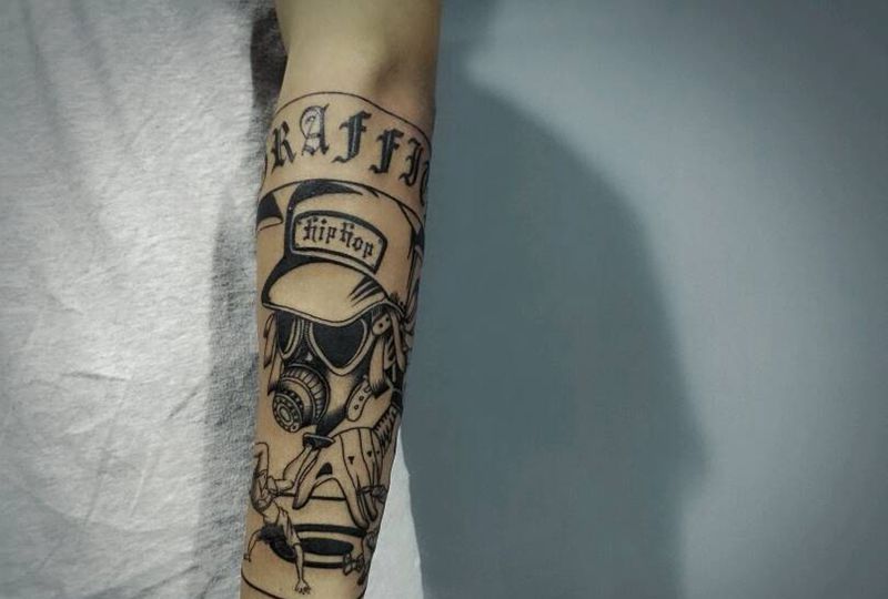 当前位置: 首页 >重庆市纹身店-木良拾贰文身艺术工作室纹身图案>newschool纹身图片_手臂欧美原创涂鸦街舞MCDJ成品纹身图案
