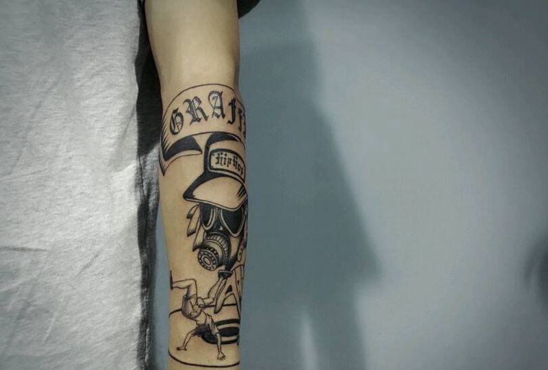 当前位置: 首页 >重庆市纹身店-木良拾贰文身艺术工作室纹身图案>newschool纹身图片_手臂欧美原创涂鸦街舞MCDJ成品纹身图案