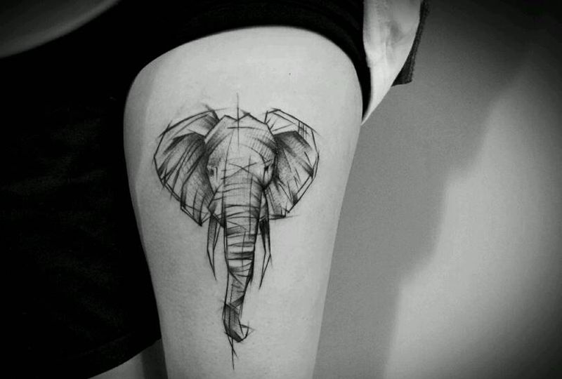 当前位置: 首页 >重庆市纹身店-木良拾贰文身艺术工作室纹身图案>简单粗暴纹身图片_腿部清新几何动物大象成品纹身图案