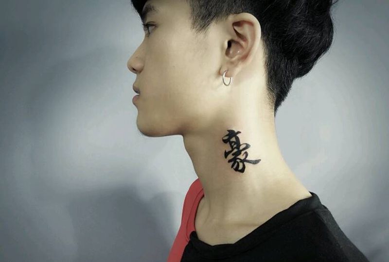 中文字体纹身图片_颈部传统字符成品纹身图案