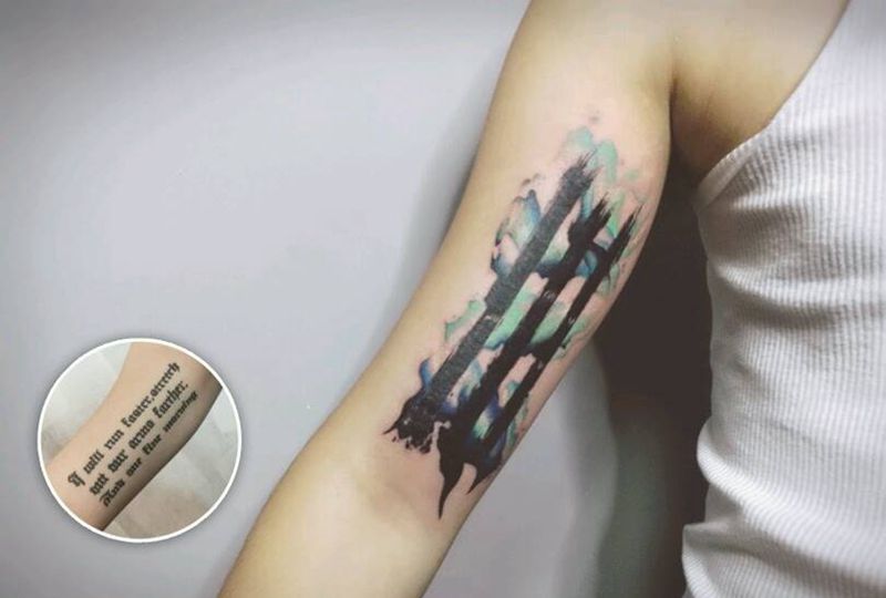 当前位置: 首页 >重庆市纹身店-木良拾贰文身艺术工作室纹身图案>水彩遮盖 【丰作品】纹身图片_手臂清新原创水墨水彩成品纹身图案