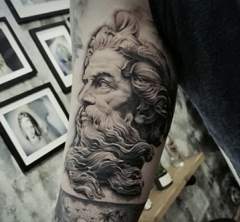 波塞冬 根作品纹身图片_手臂写实人物波塞冬成品纹身图案