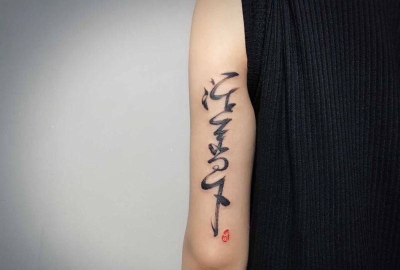 当前位置: 首页 >重庆市纹身店-木良拾贰文身艺术工作室纹身图案>现场手写书法【根作品】纹身图片_成品手臂国画字符书法纹身图案