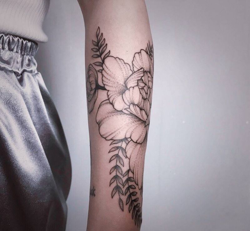 花【根作品】纹身图片_手臂点刺花纹身图案