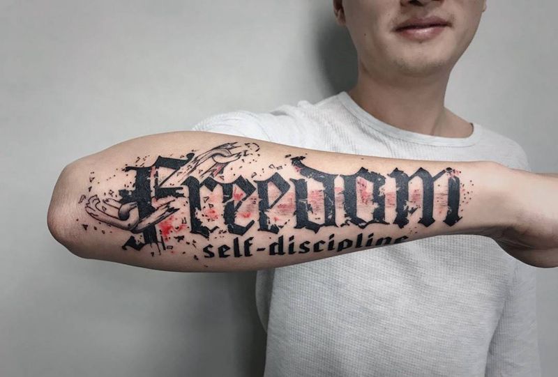 当前位置: 首页 >重庆市纹身店-木良拾贰文身艺术工作室纹身图案>奇卡诺【根作品】纹身图片_手臂花体字奇卡诺纹身图案