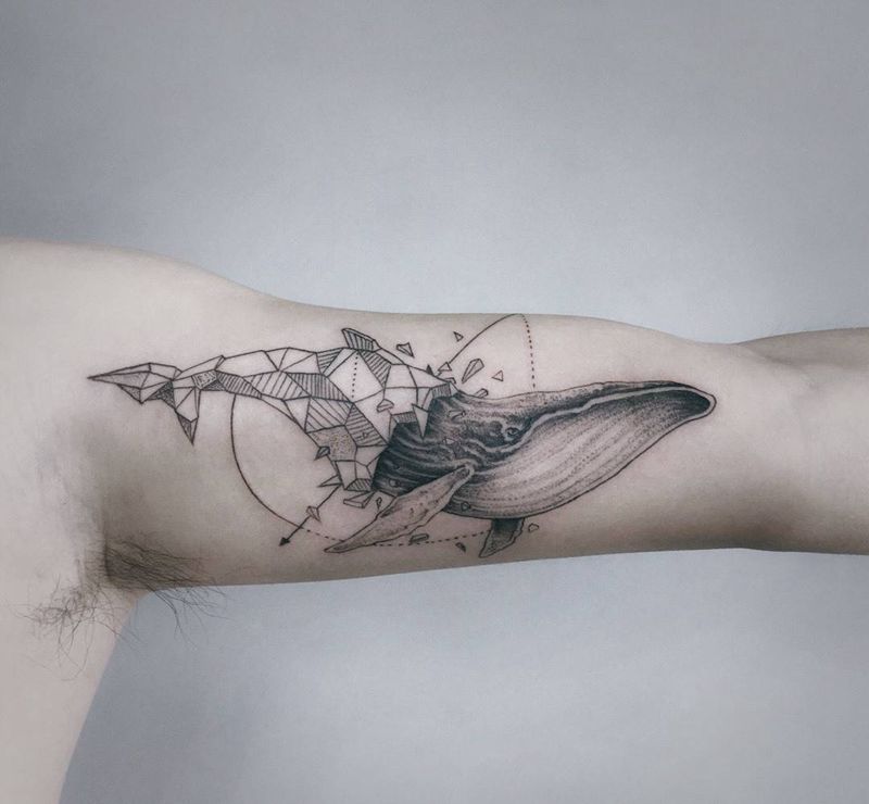 几何写实鲸鱼【根作品】纹身图片_手臂欧美写实几何鲸鱼纹身图案