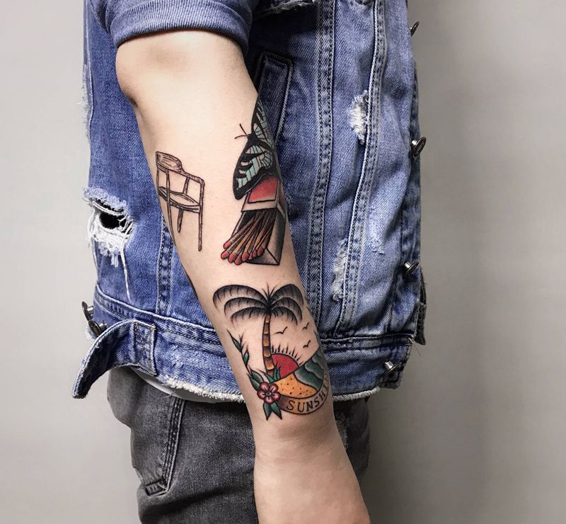 当前位置: 首页 >重庆市纹身店-木良拾贰文身艺术工作室纹身图案>Oldschool拼接【根作】纹身图片_手臂Old School纹身图案