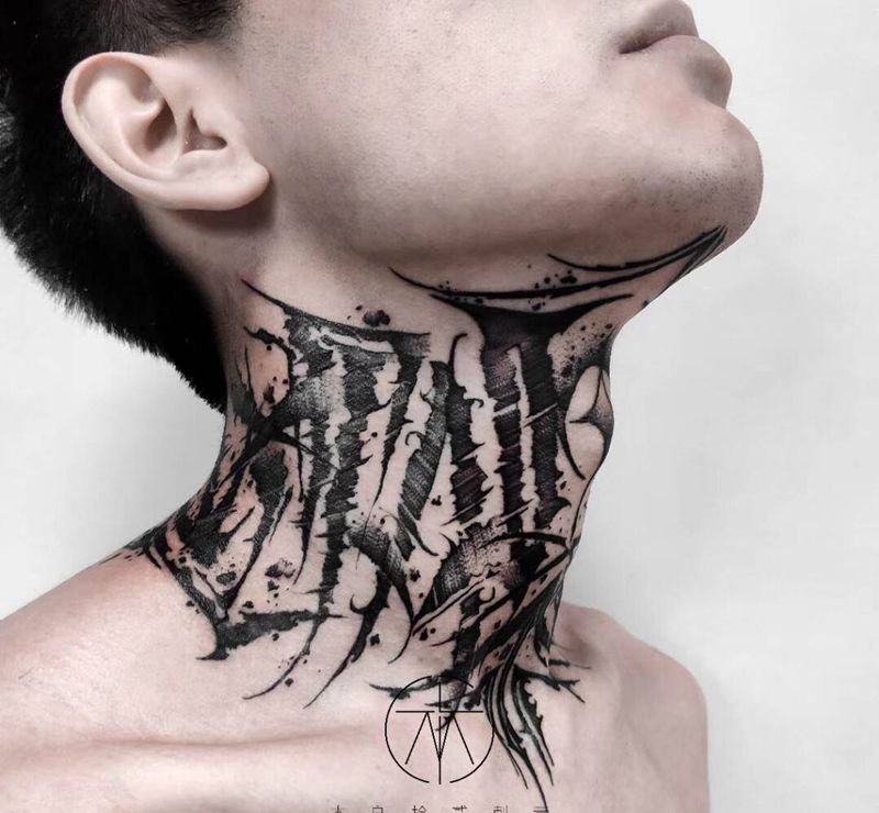 当前位置: 首页 >重庆市纹身店-木良拾贰文身艺术工作室纹身图案>奇卡诺【丰作品】纹身图片_颈部花体字奇卡诺纹身图案