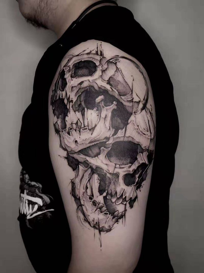 速写骷髅【璇作品】纹身图片_手臂欧美写实速写骷髅纹身图案