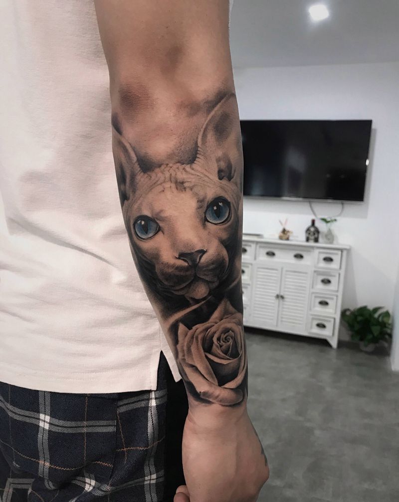 当前位置: 首页 >重庆市纹身店-木良拾贰文身艺术工作室纹身图案>无毛猫未完待续【根作品】纹身图片_手臂欧美写实无毛猫玫瑰原创纹身图案