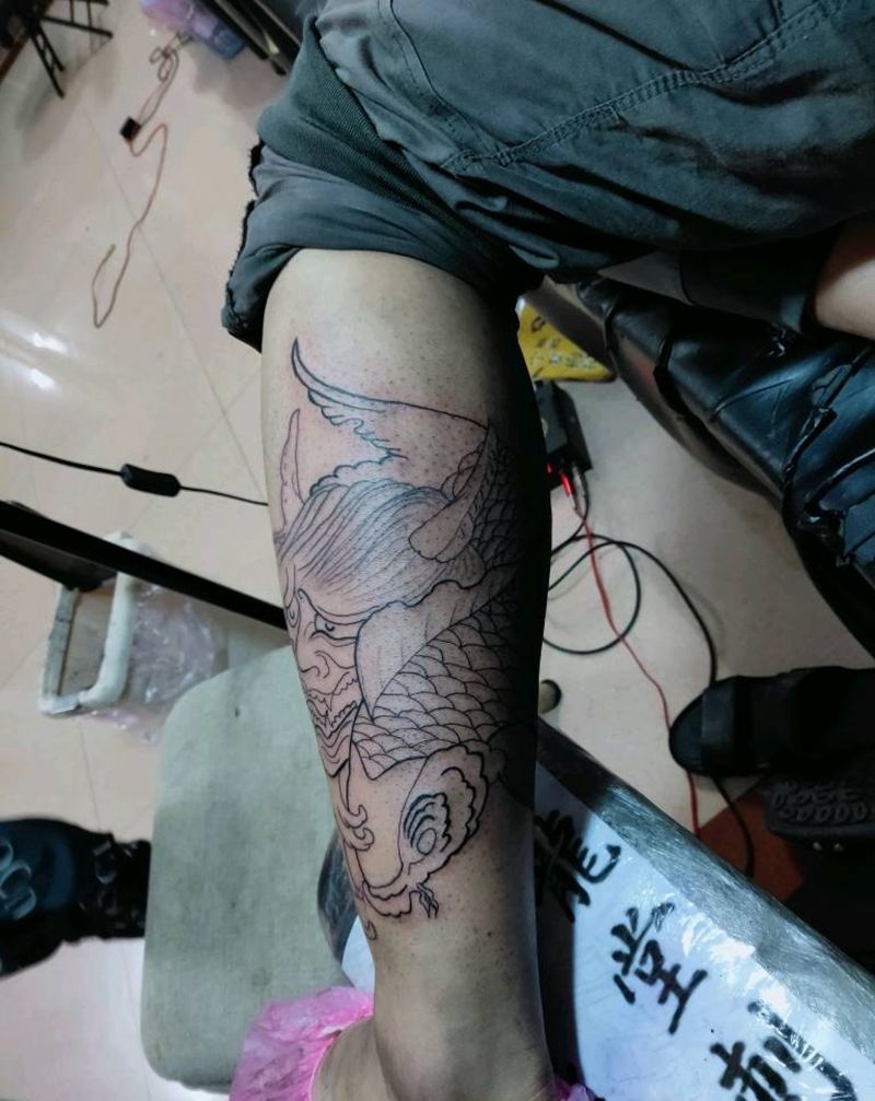 当前位置: 首页 >海南省三亚市纹身店-雕龍堂刺青团队纹身图案>小腿鲤鱼班诺纹身图片_腿部纹身图案