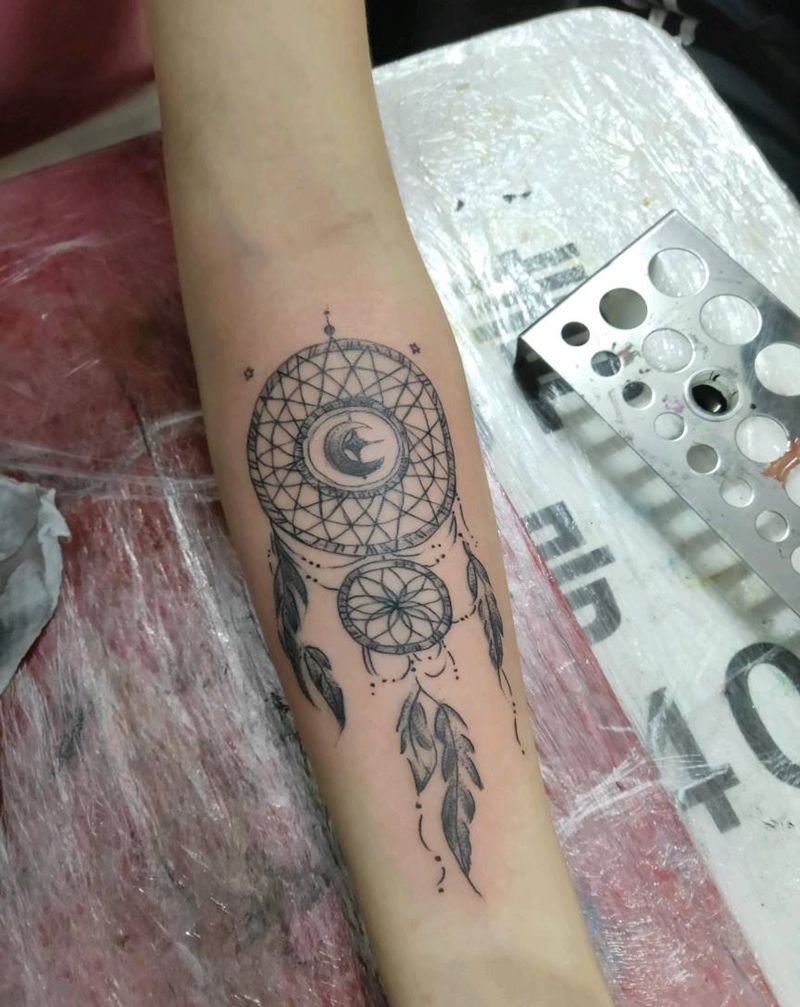 当前位置: 首页 >海南省三亚市纹身店-雕龍堂刺青团队纹身图案>捕梦网纹身图片_手臂几何纹身图案