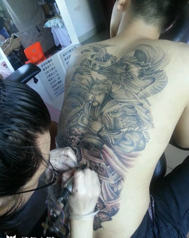 满背关公降龙纹身图片_背部传统成品纹身图案