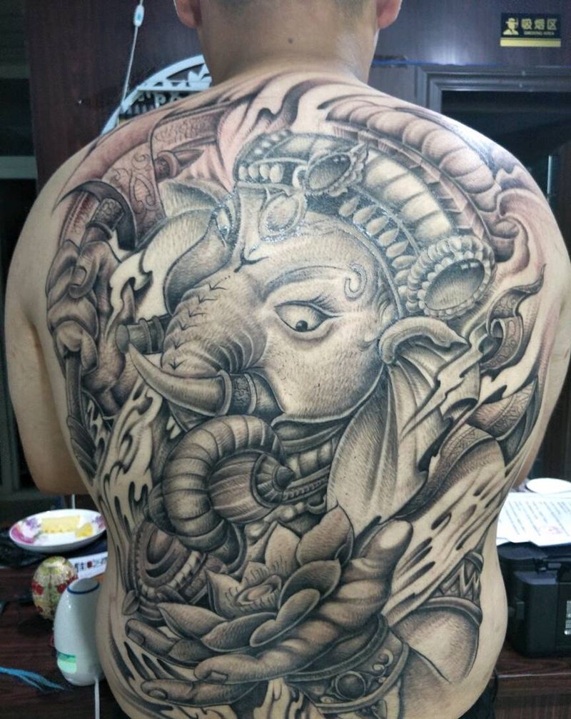 当前位置: 首页 >海南省三亚市纹身店-雕龍堂刺青团队纹身图案>满背象爸爸完成纹身图片