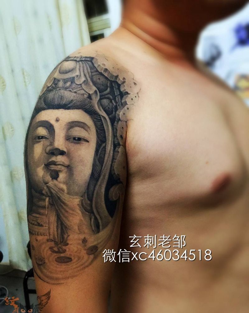 步步莲花纹身图片_成品手臂写实宗教人物纹身图案
