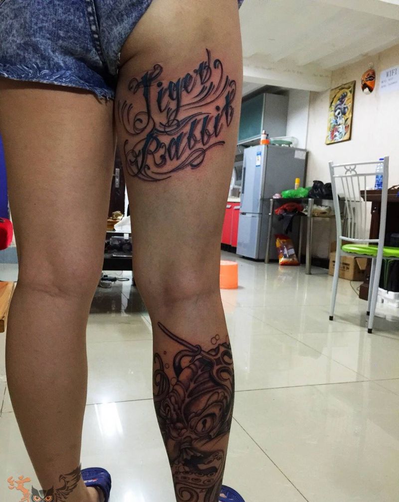 • T网红王老大花腿龙纹身图片_腿部新传统纹身图案