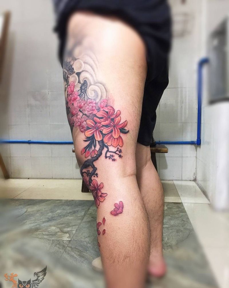 • T网红王老大花腿龙纹身图片_腿部新传统纹身图案