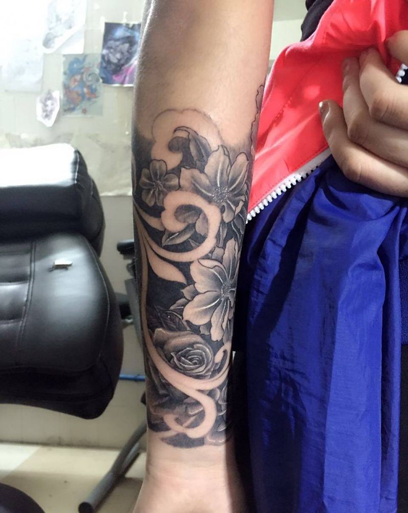 当前位置: 首页 >海南省三亚市纹身店-玄刺公社纹身图案>花纹身图片_成品手臂欧美传统植物纹身图案