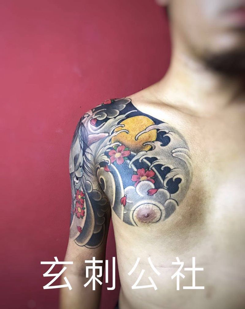 • 纹身吧推荐的披肩图腾半胛纹身图案作品展示