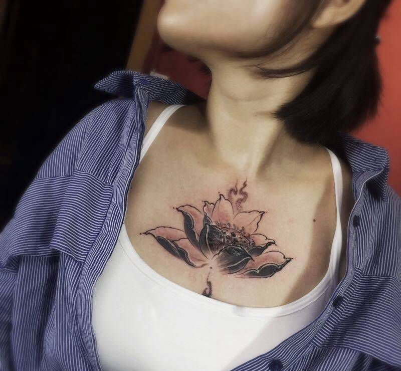 • 女性大花胸纹身_43张霸气漂亮的女性大花胸纹身图案作品