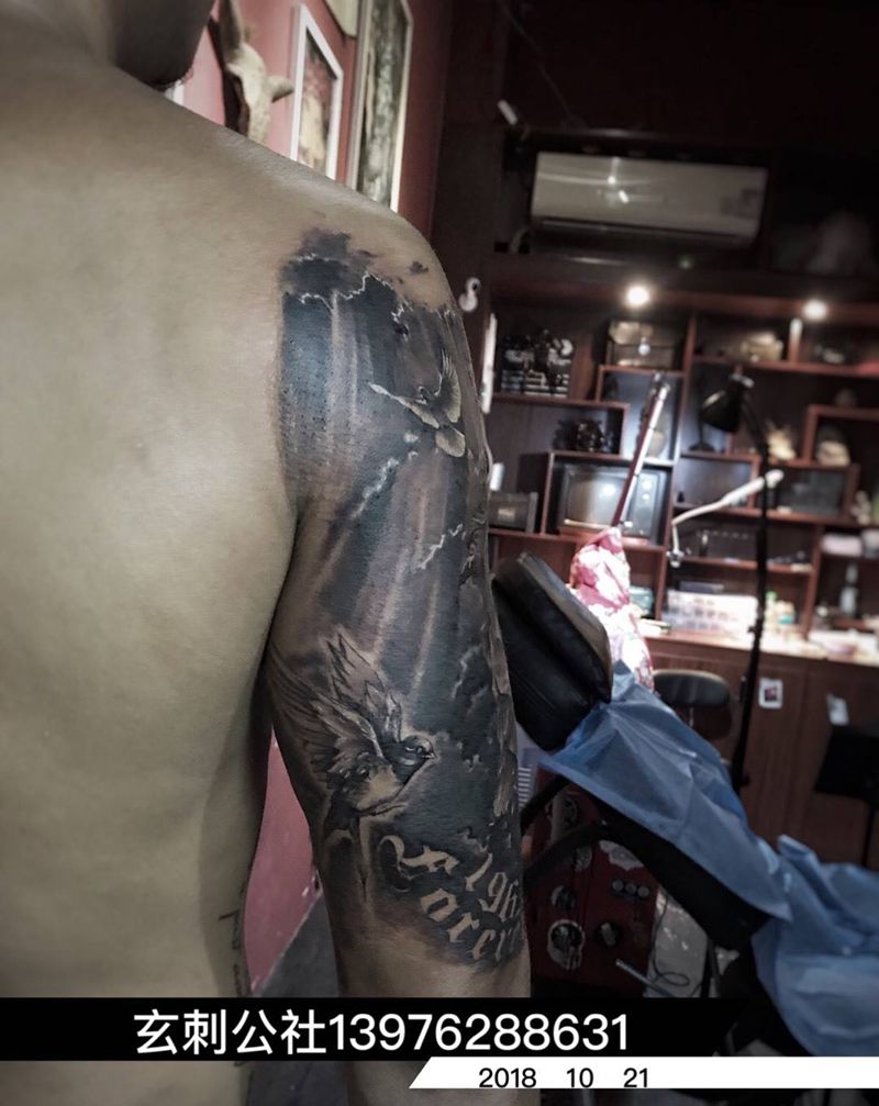 • 纹身吧推荐的披肩图腾半胛纹身图案作品展示