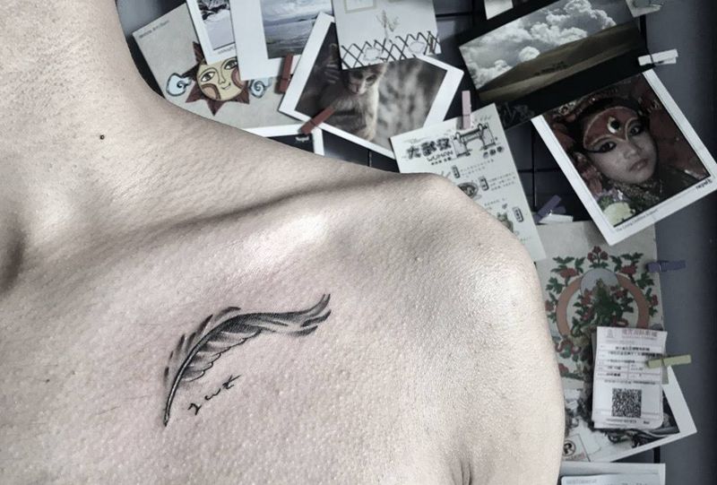 当前位置: 首页 >海南省三亚市纹身店-無畏刺青工作室纹身图案>羽毛+字母纹身图片