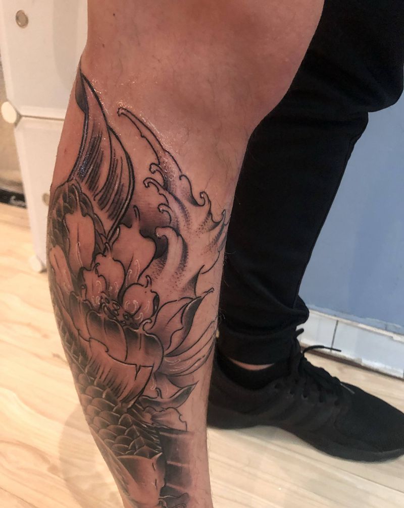 当前位置: 首页 >海南省三亚市纹身店-無畏刺青工作室纹身图案>鲤鱼纹身图片_腿部新传统纹身图案