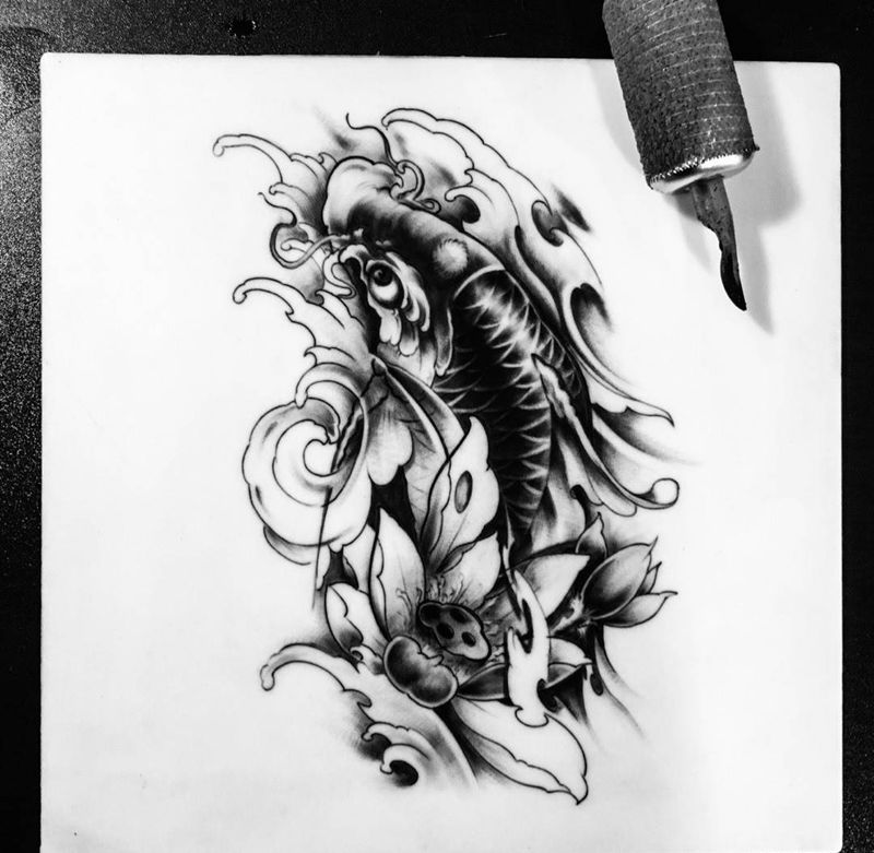 鲤鱼,新传统纹身图片_传统成品纹身图案