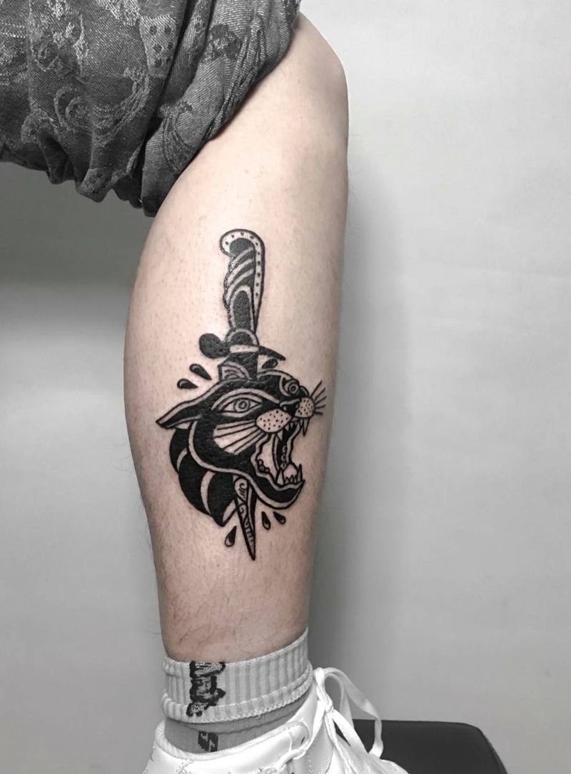 • T网红王老大花腿龙纹身图片_腿部新传统纹身图案