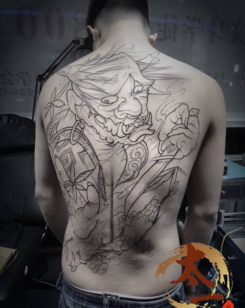 黑灰满背纹身图案