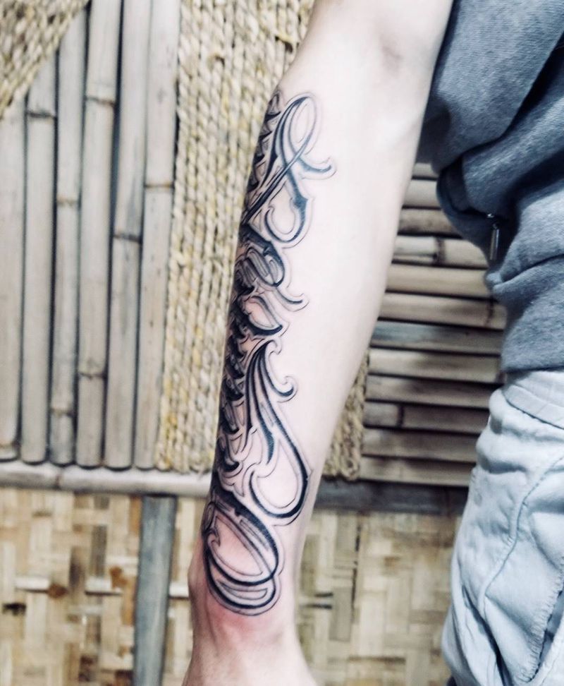 当前位置: 首页 >重庆市纹身店-太一刺青纹身图案>奇卡诺花体大臂➕小臂纹身图片