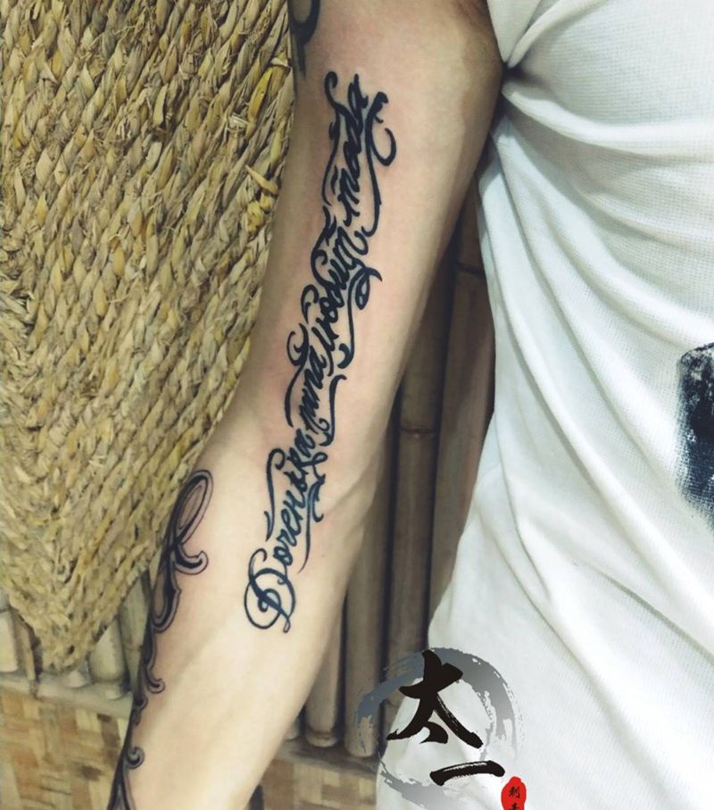 当前位置: 首页 >重庆市纹身店-太一刺青纹身图案>奇卡诺花体大臂➕小臂纹身图片