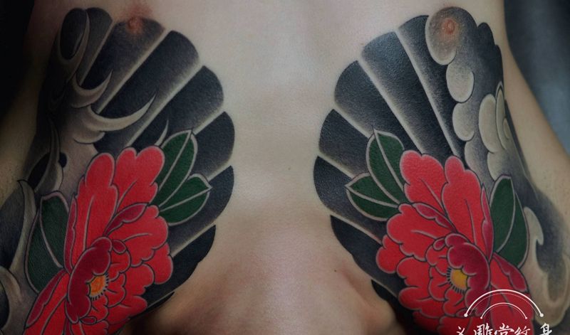 • 女性大花胸纹身_43张霸气漂亮的女性大花胸纹身图案作品