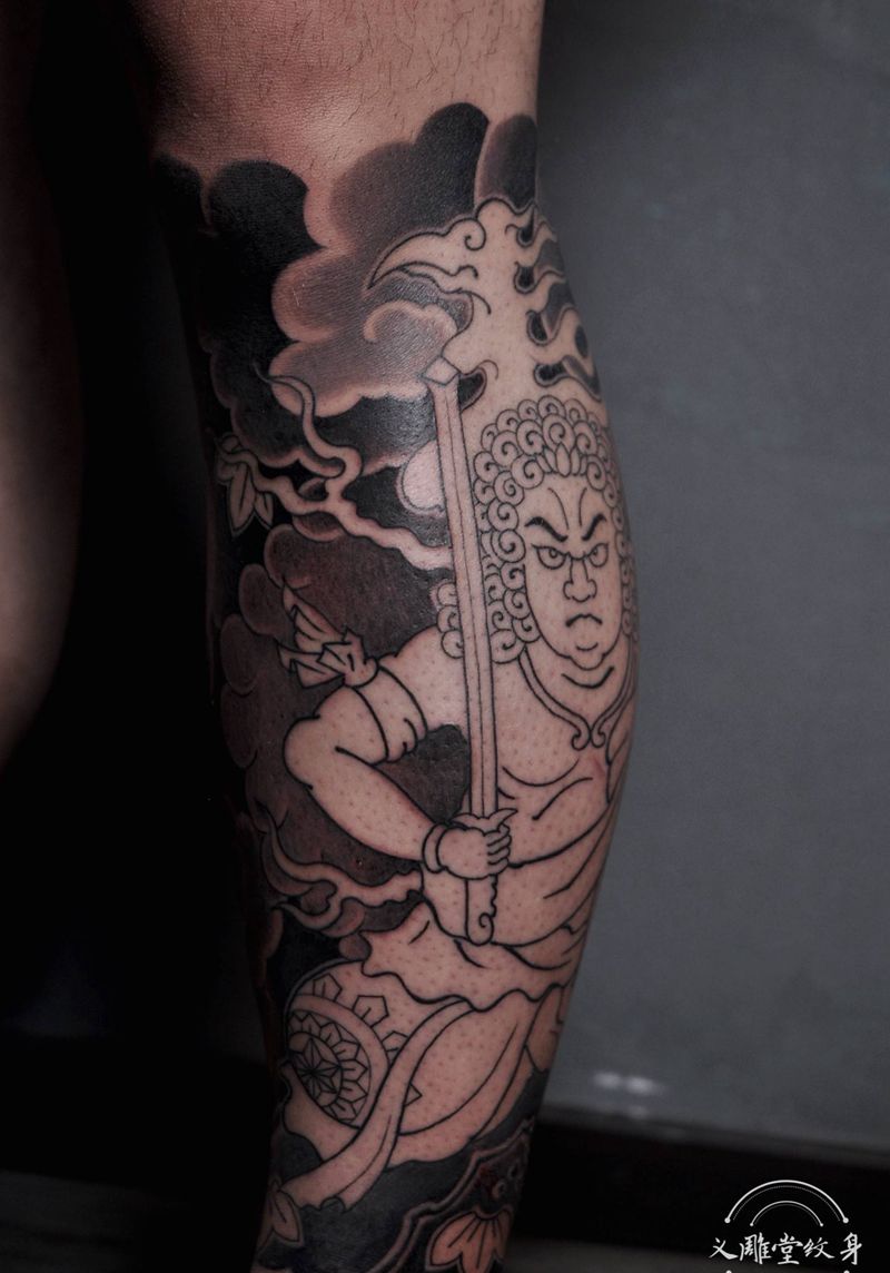 小腿不动明王刺青纹身图片_腿部老传统重庆纹身图案