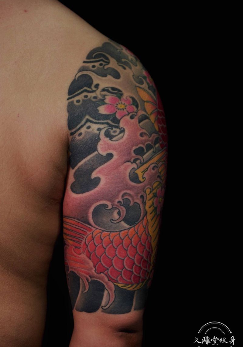锦鲤纹身纹身图片_手臂老传统重庆纹身图案