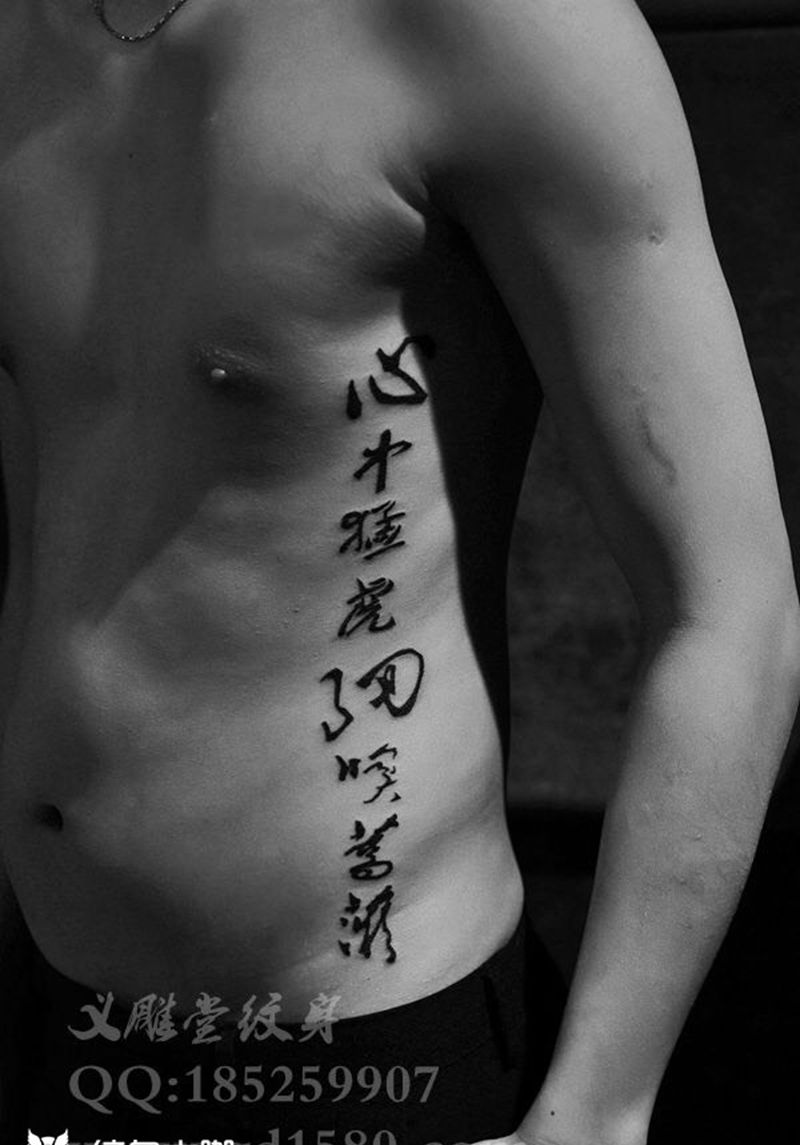 侧腰文字纹身纹身图片_字符清新重庆纹身图案