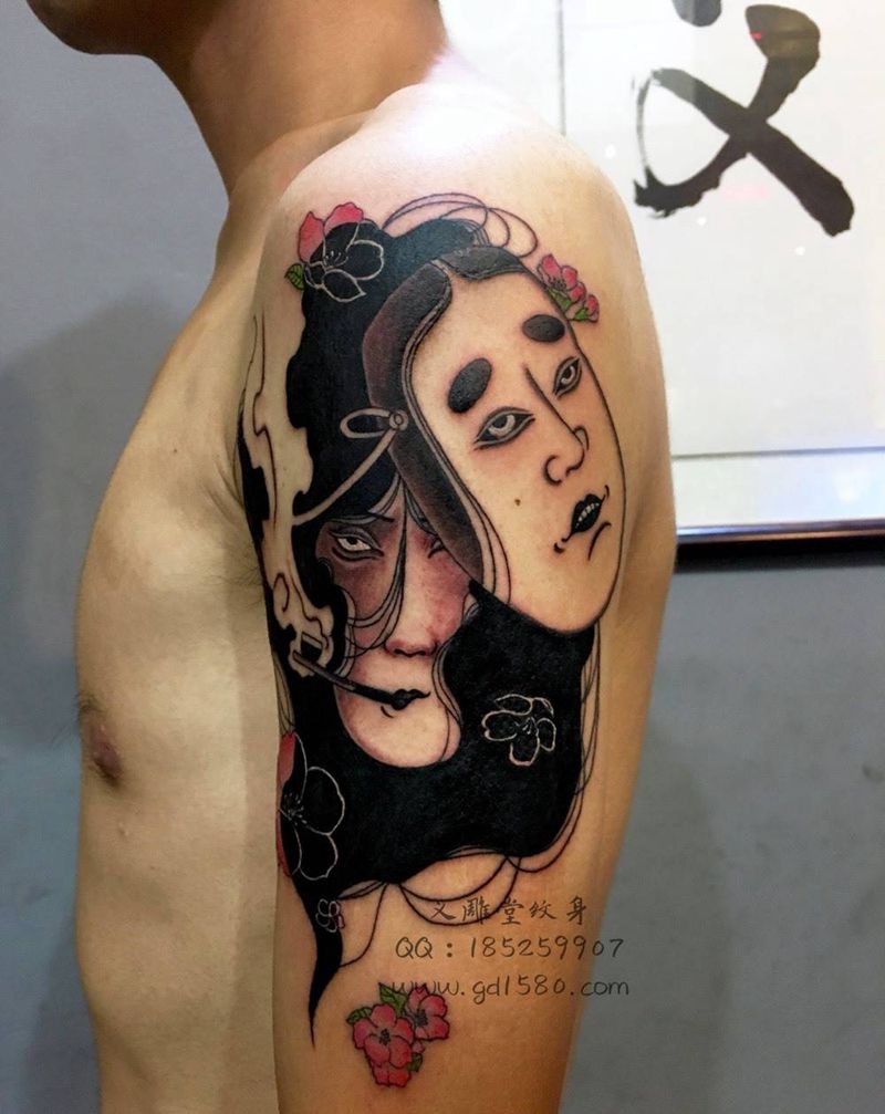 当前位置: 首页 >重庆市纹身店-义雕堂纹身纹身图案>脸谱面具纹身纹身图片